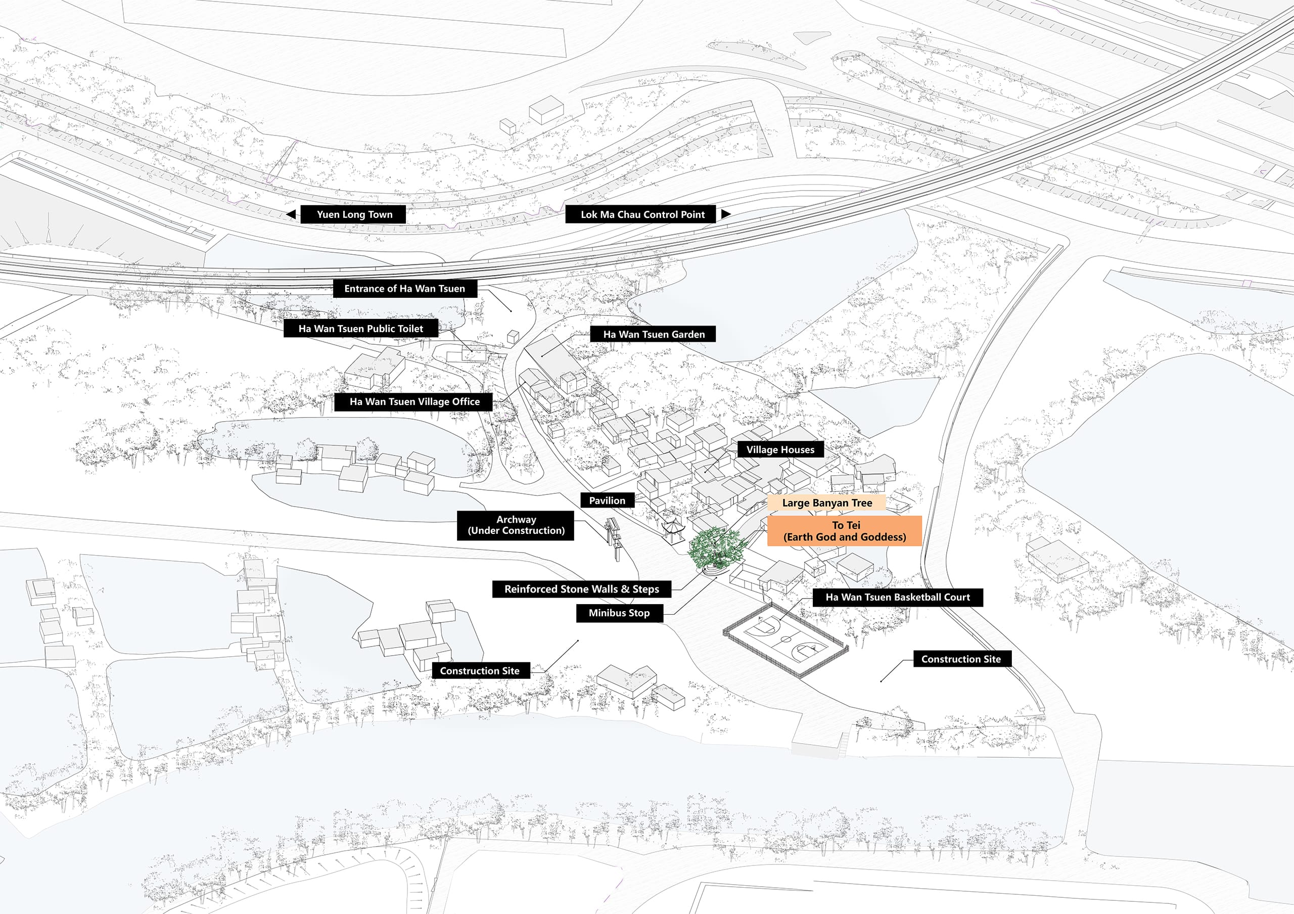 As almost three-quarters of the land in Ha Wan Tsuen is included in the development area of the San Tin Technopole of Northern Metropolis, the Lands Department has informed the villagers of land acquisition. The demolition involves more than 60 households. However, as of now, the authorities and villagers have yet to reach a consensus on resettlement arrangements. The banyan tree, similarly, faces an uncertain future.